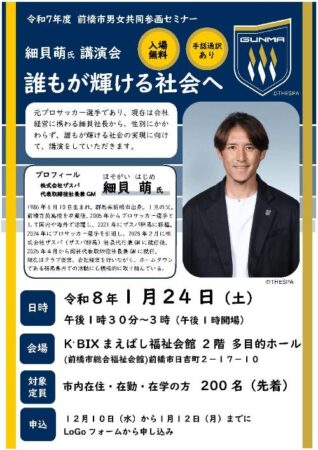 前橋市の男女共同参画セミナーにて講演させていただきます。